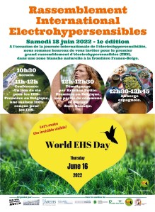 Pour des impératifs de calendrier, nous n’avons pas pu placer le rassemblement du 18 le 16 juin. Nous participons donc avec toute notre énergie à cette journée du 16 avec un petit décalage temporel. Vous serez nombreux à nous rejoindre et nous vous en remercions d’avance. Toutes ces manifestations diverses sont le témoignage que l’EHS comme le fameux nuage de Tchernobyl est un phénomène qui passe les frontières et touche toutes les populations. Coeurs d’EHS a préparé des folders à destination de la population en général, ils sont bien faits, n’hésitez-pas à les demander et à les distribuer. Bonne journée à tous.