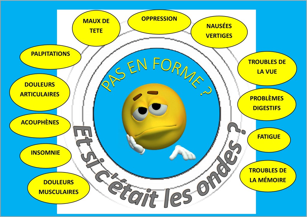 Nous avons donc maintenant besoin de lieux et de dates pour pouvoir organiser différents évènements, conférences, salons, initiatives locales pour pouvoir sortir notre matériel et informer le public. Nous devons absolument faire remonter le message de la base afin d’arriver à interpeller nos représentants politiques et gommer une fois pour toute cette image d’illuminés qui nous colle à la peau chaque fois que nous évoquons la problématique des ondes. Elles sont inodores, incolores, …, à nous à les rendre visibles en nous montrant de façon intelligente. Nous ne sommes pas des victimes consentantes mais des humains qui ont des droits de vivre normalement. Je ne parle même pas du respect de la biodiversité et des dommages à notre environnement.
