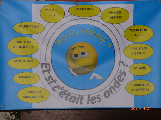 Je prend un réel plaisir à faire ces conférences sans contraintes de projection ou d’ordinateur. La richesse de la conférence réside dans l’échange avec les participants et les questions fusent au fur et à mesure que j’expose la situation. Ce sont des questions qui portent sur les symptômes, sur la technique, sur la fibre et sur la technologie des ondes en général en passant par les satellites. J’aime agrémenter mon exposé d’exemples du quotidien et les gens raffolent des petites anecdotes.