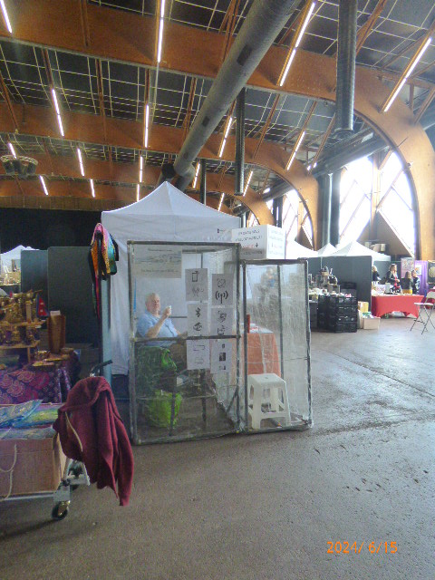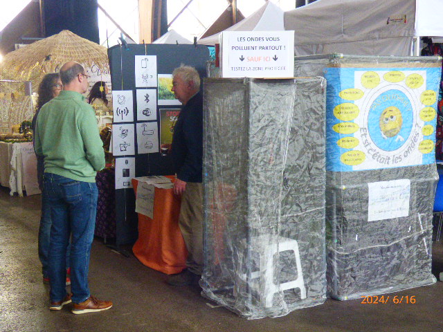 Il est maintenant temps de tirer quelques conclusions de notre première expérience salon. Il faut d’abord rappeler que sans le baldaquin de protection, cela n’aurait pas été possible pour nous. C’était un véritable refuge qui nous permettait de récupérer entre nos interventions extérieures. La pollution dans le palais des expositions résultait principalement des smartphones du public, plus il y avait de monde, plus cette pollution augmentait. Nous sommes parfois restés longtemps planqués dans notre abri pour récupérer.