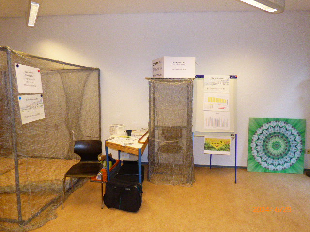 Nous n’avons pas eu le temps d’assister aux conférences avec le stand et je donnais moi-même une conférence at je devais aussi être modérateur d’un autre intervenant. Bref, je ne sais rien de ce qui s’est dit durant cette journée mais j’ai échangé avec de nombreuses personnes. Je recommençais à boîter sérieusement et je ne comprenais pas pourquoi. Une personne avec un appareil un peu plus sophistiqué a expliqué qu’il notait un signal à intervalle régulier. Oui, il y avait bien un radar actif dans le coin. Ma jambe ne me trompait pas. Je me suis réfugié sous mon baldaquin et j’en suis sorti pour le repas du soir et pour le tirage de la loterie. J’avais amené une dizaine de lots et un tirage a été organisé le soir. Un couple a gagné 4 des lots. La soirée c’est continuée avec de la musique et de la danse pour les participants, ma soirée c’est continuée à l’abri dans mon van sous haute protection de Saint Adamantan003.