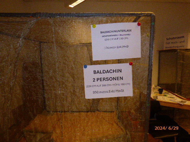 Nous avons rencontré de nombreuses personnes et on a ensuite passé beaucoup de temps à expliquer le baldaquin aux visiteurs. Je ne pensais qu’à une chose mon lit et débrancher mes oreilles de cette cacophonie de langues diverses. Nous dormions dans notre van, protégé par un baldaquin en Adamantan03 fixé au plafond avec des aimants. Nous avions blindé avec un autre tissu (saphir) le dessous du matelas. Nous étions entièrement protégés et les appareils de contrôle étaient silencieux. La nuit fut calme et le samedi matin, après une douche froide et un copieux petit déjeuner, nous étions prêt à affronter cette nouvelle journée.