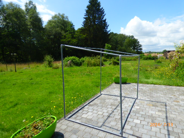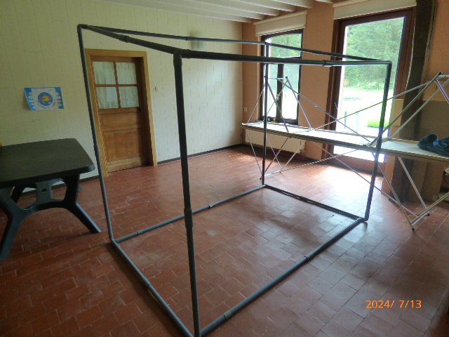 Nous sommes toujours un peu à l’étroit pour l’assemblage et nous devons ensuite tout démonter pour avoir assez de place pour la couture et les découpes. Nous sommes et restons des artisans avec les moyens du bord. Pourtant nos baldaquins sont maintenant en Hollande, en France, en Allemagne et je pense bientôt en Suisse. Nous fabriquons un baldaquin au maximum par semaine, nous l’étiquetons pour faciliter le montage, nous le testons et enfin seulement, on le met en boîte pour l’expédier. L’emballage , le poids de moins de 10 kg nous autorise à l’envoyer pour moins de 20 € dans les pays limitrophes.