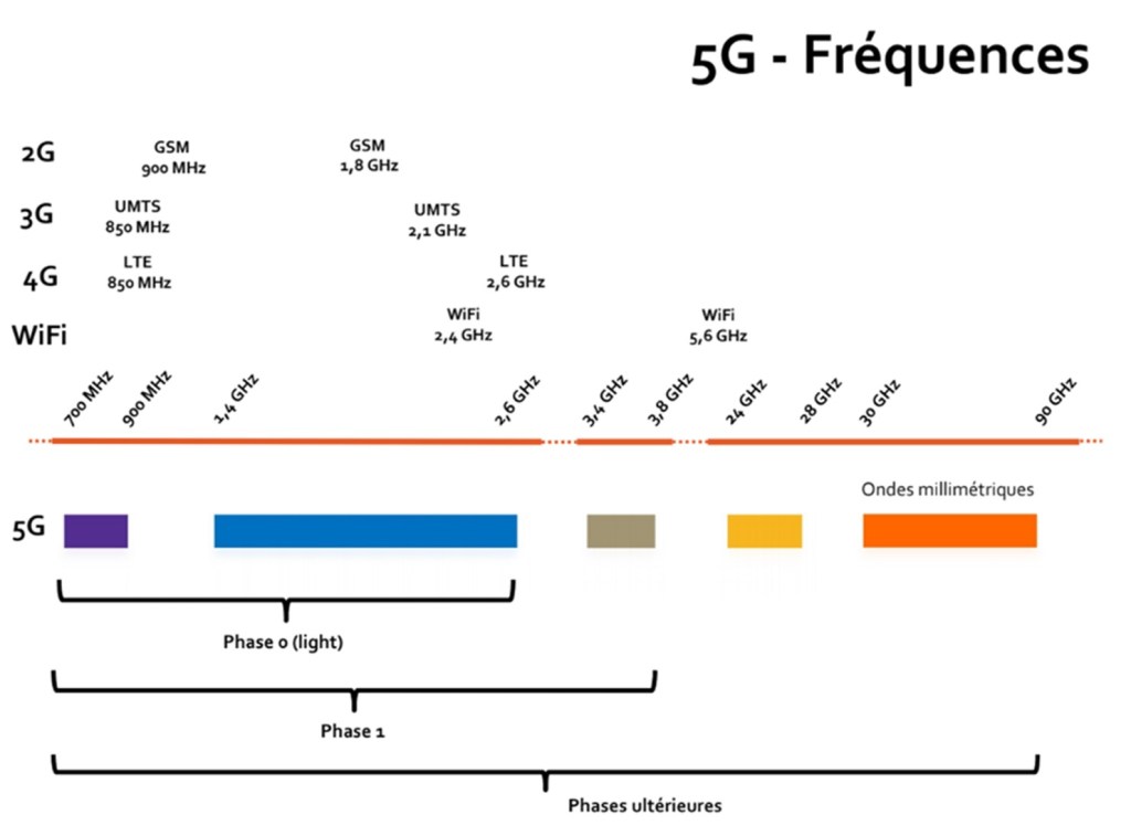 Pour bien combattre, il faut connaitre son ennemi, ce schéma me sert de base de référence par rapport à la recherche de solutions efficaces. Il était présenté par Mme de Hemptinne dans ses conférences. Notre principal souci se situe aujourd’hui sue les phases 0 et 1 de la 5G qui travaillent sur des fréquences connues des générations précédentes. Nous avons eu en bonus en 2023 la tranche de 3,4 Ghz à 3,8 Ghz. La plupart des solutions offertes sur le marché couvrent en principe ces bandes de fréquence avec plus ou moins d’efficacité. Les phases ultérieures au-delà des 24 Ghz ne sont pas encore présentes et nécessiteront encore de nombreux investissements de la part des opérateurs avant d’arriver à l’internet effectif des objets. Ils vont vite et reçoivent des soutiens politiques et financiers de l’Europe.