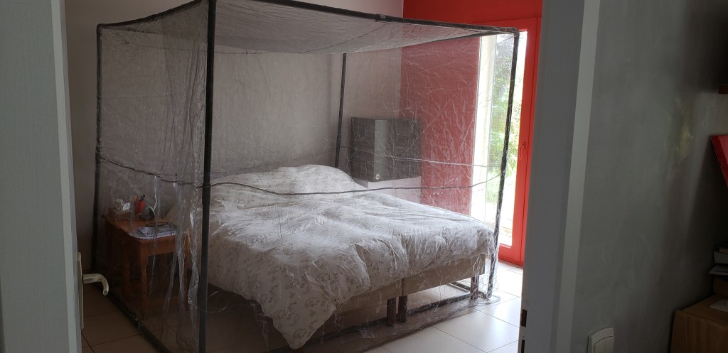 Voilà, c’est expédié, une association française du sud recevra dans quelques jours notre premier don sous forme d’un baldaquin anti-ondes pour se protéger la nuit. Le paquet de 120 cm comprend une structure en PVC, un voile transparent et respirable en Adamantan003, un tapis de sol en saphir et une mise à la terre avec contact aimanté.