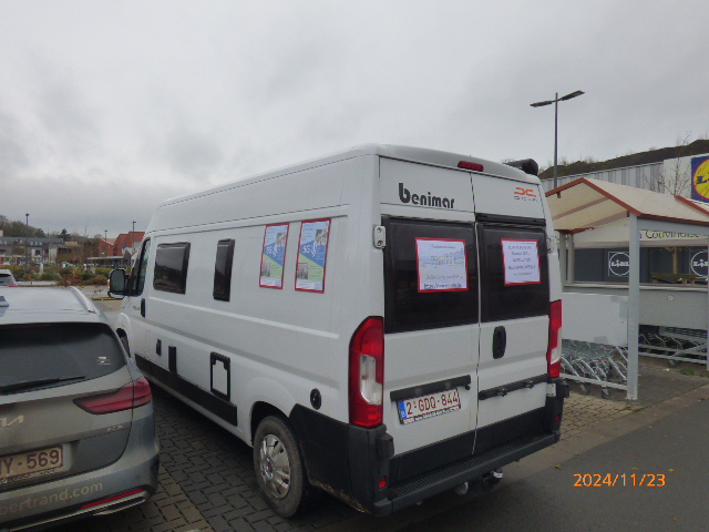 Notre effort publicitaire a porté sur un écran lumineux gratuit mis gratuitement à la disposition par la commune de Couvin et par le déplacement d’un véhicule avec affiches tous les matins dans le centre commercial depuis une semaine. Les véhicules, différents chaque jour, sont placés devant l’entrée du magasin principal ou devant une pharmacie ou ce matin devant le magasin Proximus.