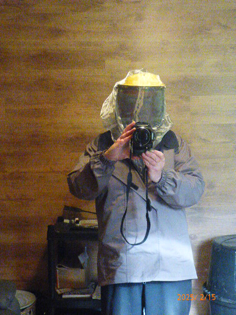 Pour le corps, on a le vêtement de protection, pantalon et veste séparée, qui nous couvre du cou aux mollets. On complète pour les mains et les pieds par des gants et des chaussettes. Pour la tête, c’est le casque recouvert d’un filet en Adamantan003 qui nous offre la protection avec une bonne vision et une bonne respiration. Je ne dis pas que tout est agréable à porter toute une journée mais cela nous évite bien des souffrances pour le reste de la semaine.