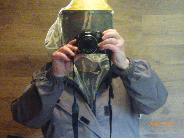 Prendre une photo de soi dans un miroir n’est pas facile. Après une semaine de vie en zone protégée, nous repartons ce dimanche à la capitale en pleine exposition. Les protections sont de rigueur et il faut préparer soigneusement son matériel.