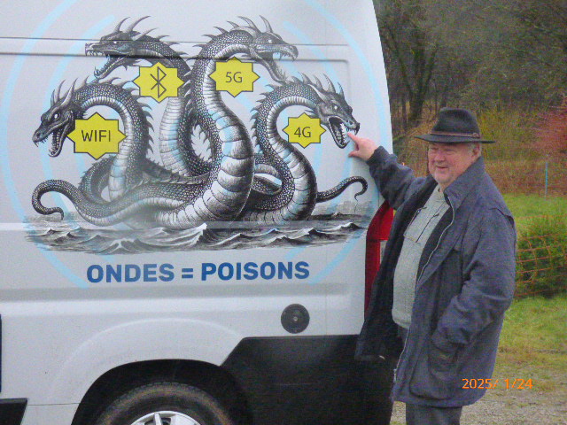 Oui, je peux maintenant me frotter aussi à la 4G et lui gratouiller la langue. Dans un mois, nous allons rendre visite à AZB à l’occasion de leur dixième anniversaire. C’est un long périple que de descendre dans la Drome en partant de Rièzes. Pour ce faire, nous mettons la dernière main au blindage de notre Van. C’st grâce à une idée de mon épouse que nous sommes arrivés à la solution suivante. Légalement parlant, nous n’avons pas le droit d’appliquer un quelconque revêtement sur le pare-brise ou les vitres latérales à l’avant du véhicule. Nous avons un double siège passager dans la moitié du véhicule. L’arrière étant occupé par le lit protégé maintenant par un baldaquin en Adamantan003 doublé. Les 2 aérations du plafond ont également été protégées par un matériaux en inox. Le conducteur sera protégé par un équipement anti-ondes complet, du petit orteil au sommet du crâne grâce à un casque de notre fabrication. Il pourra conduire en toute sécurité. Le passager se mettra sur la banquette au milieu du véhicule protégé par un rideau transparent en Inox qui sépare la partie conducteur de la partie arrière. Une fois à l’arrêt ce rideau ou voile peut être bougé au-dessus des sièges pour protéger l’ensemble du véhicule.