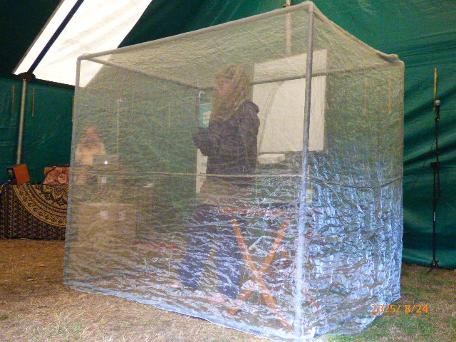Hier nous avons livré 2 baldaquins, 2 heures de route pour aller chez les personnes, 2 heures pour installer et 2 heures pour revenir. Cela après 2 semaines de préparation pour les structures, la couture et la confection des tapis de sol et de la mise à la terre. J’ai voyagé non protégé et j’avais une cure d’hydrogénothérapie avant de partir. Sur place, mon « Safe and sound » clignotait dans tous les sens et je ne sentais rien, juste une extrême fatigue pour e trajet retour et j’ai refait 1 séance en revenant à la maison.