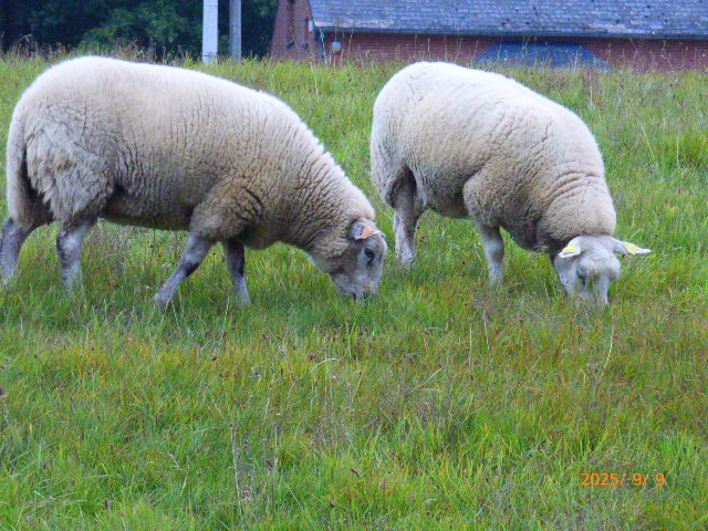 En ouvrant la porte d’entrée ce matin, ma surprise fut grande de voir des moutons en face de moi. Ils ne disent rien, ils broutent sans relâche et entretiennent ainsi les terrains autour de la maison. J’ai cru lire que les rièzes étaient jadis non pas des cultures de riz mais des terrains trop pauvres pour la culture qui étaient utilisés pour produire du foin et faire paître les moutons. C’est une sorte de retour aux sources.
