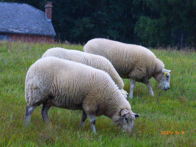 J’aime bien le côté paisible de ces animaux qui amènent de la vie tout en respectant le calme. Nos 2 petits moutons d’Ouessan ne rivalisent en rien avec ces véritables tondeuses sur pattes. J’avais pensé mettre des chèvres, ça mange tout mais c’est curieux et ça va toujours se mettre où il ne faut pas et elles vont se coincer les cornes dans les clôtures. Quand les terrains seront bien nettoyés, les moutons changerons de pâture pour laisser la place au printemps prochain à une herbe bien haute pour faire du foin, principale ressource du coin.