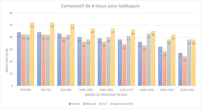 L’étude complète portait sur une dizaine de produits et nous a conduit à sélectionner l’Adamantan003 en acier inoxydable avec des performances satisfaisantes, à la fois transparent et respirant. Son inconvénient principal est sa tendance à se recroqueviller. Seulement, il n’existait pas sur le marché de solution toute faite. J’ai donc à 63 ans, acheté une machine à coudre et j’ai appris à dompter la machine et le tissu. En parallèle face au problème de suspension au plafond, j’ai développé une structure en PVC démontable et facile à installer. Un autre défi était de garder un prix concurrentiel et abordable pour les EHS. Le produit final a évolué énormément en 3 ans. Nous utilisons maintenant une structure PVC plus épaisse, des moyens de fixation plus solides et nous lestons le tissu dans le bas pour une meilleure protection. Nous utilisons également des aimants néodymes pour la fermeture de la porte. Le principe étant toujours le même pour se protéger, s’inspirer d’un sous-marin qui doit être étanche à l’eau. Le baldaquin doit être étanche au ondes.